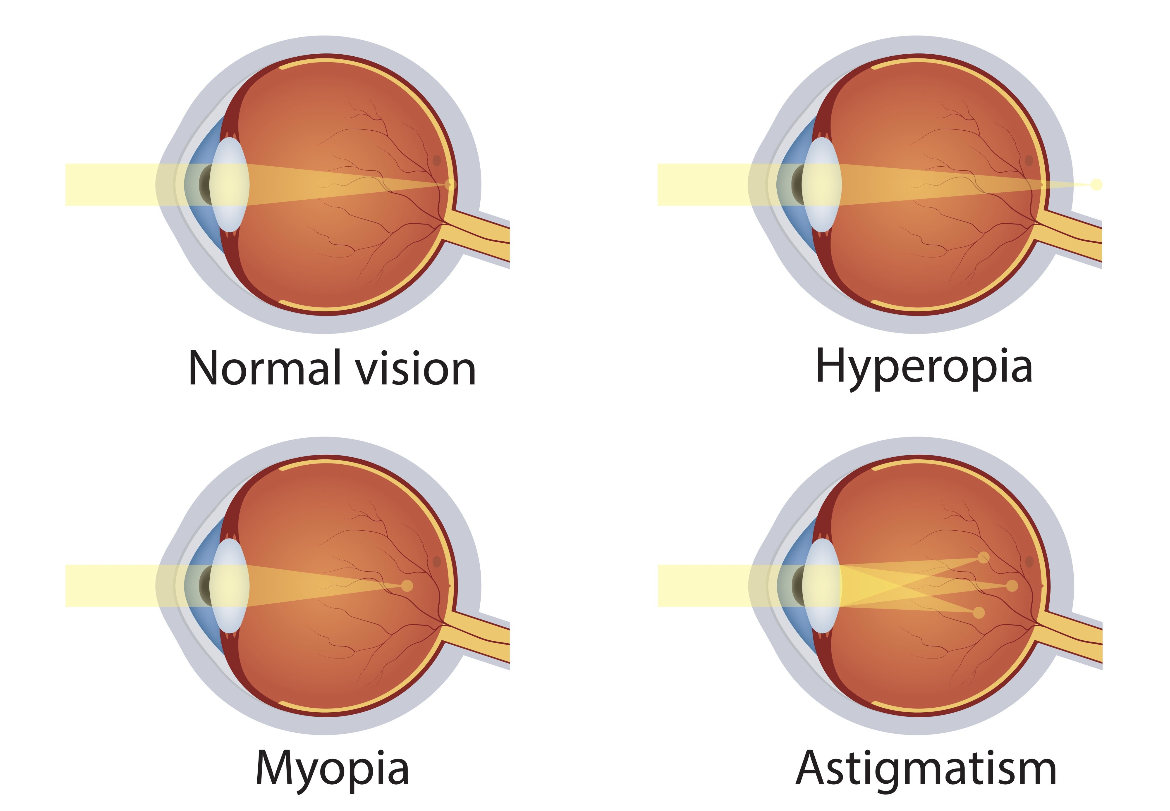 ・Hyperopic Astigmatism: One or both principal meridians focus behind the retina.